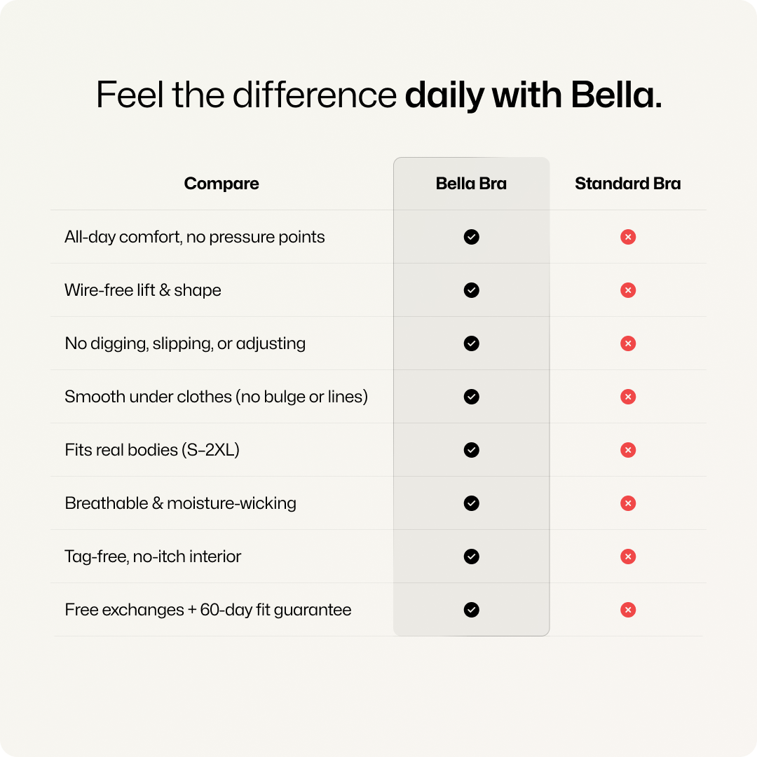 We’re obsessed with perfect fit. If your Bella Bra doesn’t fit just right, enjoy free exchanges, easy returns, or your money back—no questions asked. We won’t rest until you love your fit.